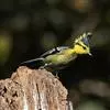 冕雀:共有4个亚种。体长20-21厘米,体重34-49克。具蓬松的黄色长型冠羽。雌鸟似雄鸟,但喉及胸深橄榄黄色,上体沾橄榄色。不会被误认的体大的黄色及黑色山雀。混群栖于原始林及次生林的林冠层,…全部>>