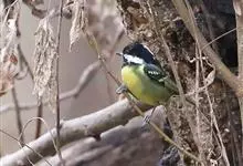 黄颊山雀是雀形目山雀科山雀属鸟类。雄鸟额、头顶和羽冠为具有光泽的黑色;额基、眼先、眉纹、脸颊和耳羽等头颈侧为鲜艳的明黄色;贯眼纹黑色;后颈亦具一黄斑;上体灰黄绿色,羽缘黑色;尾羽黑色具蓝灰色羽缘,…全部>>