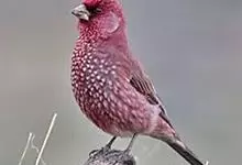 大朱雀:体重33-52克;体长167-205毫米;体形较大;为不常见留鸟。体羽深红色;羽中央具白色或带粉白色斑点,颊深红色;雌鸟体羽淡灰色,稍暗的颊具有阴暗或带褐色斑纹;下背和腰无斑纹。…全部>>