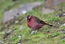 喜马拉雅白眉朱雀:小型鸟类,体长15-17厘米,体重24-35克。额基、眼先深红色,前额和一条长而宽阔的眉纹珠白色沾有粉红色并具丝娟光泽,在暗色的头部极为醒目。头顶至背棕褐或红褐色、具黑褐色羽干纹,…全部>>