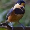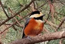 杂色山雀,是山雀科山雀属的一种动物。体重17-18克,体长125-140毫米。雌雄羽色相似。额、眼先、耳羽至颈侧乳黄色,头顶至后颈黑色,后头中央有一白斑。上背栗色,上体余部及翼蓝灰色。颏、喉黑色,…全部>>