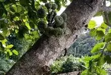 大果榕是桑科榕属的小乔木,株高可达10米;幼枝被柔毛;叶互生,宽卵状心形或近圆形;雄花无梗、匙形、花丝长,雌花生于雌株榕果内,子房白色;榕果簇生于树干基部或老茎短枝上、扁球形或陀螺形,…全部>>