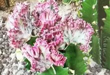 彩春峰是大戟科大戟属肉质植物,彩春峰的肉质茎依品种的不同有暗红色、乳白、淡黄及镶边、斑纹等复色。彩春峰的性状很不稳定,栽培中经常会发生色彩的变异,如暗紫红色肉质茎会长出白色黄色斑块等。…全部>>