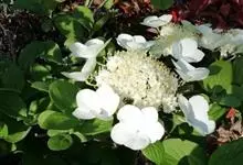 蝴蝶戏珠花 Miq.)是荚蒾科荚蒾属植物。落叶灌木,高达3米;当年小枝浅黄褐色。叶较狭,宽卵形或矩圆状卵形,有时椭圆状倒卵形。花序直径4-10厘米,外围有4-6朵白色、木型的不孕花。果实先红色后变黑色,…全部>>