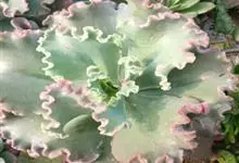 女王花笠,又名扇贝石莲花、女王花舞笠,是景天科拟石莲花属的多肉植物。由美国加利福尼亚州的育种师Dick Wright于1964年培育。特征是呈大波浪状褶皱的红色叶缘和气质高贵的粉紫色调。…全部>>