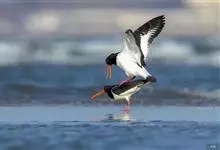 蛎鹬是鸻形目蛎鹬科蛎鹬属。蛎鹬的成鸟夏羽头、颈、胸和上体大部分为乌亮的黑色,腰到尾上覆羽白色,尾羽基部白色,端部黑色;翼上黑色,具有白横斑;下体胸部以下白色,翼下白色带黑缘;虹膜红色,啄和眼圈橘色,…全部>>