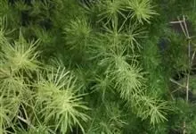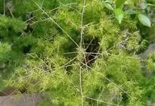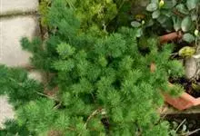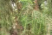 蓬莱松是天门冬科、天门冬属多年生丛生草本植物。宿存,圆柱形肉质根,纵截面为绿色和表面灰色。植株高可达3米。茎呈圆柱形或近四边形,底部木质化,具有灰色或灰褐色。幼嫩的茎在每个节上都被紫绿色鳞片包,…全部>>