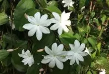 素馨花,木犀科素馨属多年生的攀援灌木植物。攀援灌木,小枝圆柱形,具棱或沟;叶对生,叶轴常具窄翼,小叶片卵形或长卵形;聚伞花序顶生或腋生,花序梗长,苞片线形,花萼无毛,裂片锥状线形,花冠白色,…全部>>