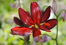山丹是百合科百合属的多年生草本植物。鳞茎卵形或圆锥形,鳞片长圆形或长卵形,白色;叶散生茎中部,线形,边缘有乳头状突起;花单生或数朵成总状花序,花鲜红色,常无斑点,花被片反卷,…全部>>