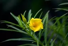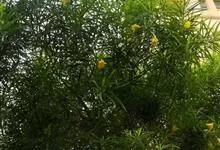 黄花夹竹桃K. Schum.),又名“酒杯花”“柳木子”“黄花状元竹”,是夹竹桃科,黄花夹竹桃属下的常绿乔木植物。高达5m,全株无毛,树皮棕褐色;叶互生,近革质,线形或线状披针形;花大,黄色,具香味,…全部>>