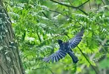 发冠卷尾是中型鸟类,体长28-35厘米。通体绒黑色缀蓝绿色金属光泽,额部具发丝状羽冠,外侧尾羽末端向上卷曲。栖息于海拔1500米以下的低山丘陵和山脚沟谷地带,多在常绿阔叶林、次生林或人工松林中活动。…全部>>