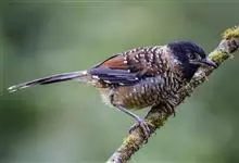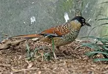 栗颈噪鹛是噪眉科、噪鹛属中型鸟类,体长22-25厘米。头顶至枕暗石板灰色,前额、头侧、颏、喉至上胸黑色,耳后至颈侧有一栗棕色块斑,在头后颈侧极为醒目。上体暗橄榄褐色,两翅黑褐色,初级飞羽外翈沾灰。…全部>>