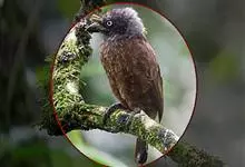 白颊噪鹛是雀形目噪鹛科噪鹛属鸟类,又称土画眉、小画眉、小噪鹃。成鸟额至头顶栗褐色,长眉纹、眼先和颊纹棕白色,眼后至耳羽深褐色,…全部>>