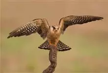 红隼:是隼科、隼属的小型猛禽之一。体重173-335克,体长305-360毫米。翅狭长而尖,尾亦较长,外形和共同爪隼非常相似。雄鸟头蓝灰色,背和翅上覆羽砖红色,具三角形黑斑;腰、尾上覆羽和尾羽蓝灰色,…全部>>