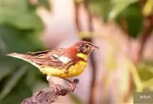 黄胸鹀是雀形目雀科鹀属鸟类,又名黄胆、禾花雀。雄鸟额、头顶、颏、喉黑色;头顶和上体栗色或栗红色;尾黑褐色,外侧两对尾羽具长的楔状白班;两翅黑褐色,翅上具一窄的白色横带和一宽的白色翅斑;下体鲜黄色,…全部>>