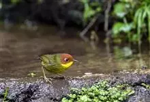 栗头地莺:小型鸣禽。体长约10厘米。体型纤细,是中国体型最小的鸟类之一;喙细尖,上喙先端多有缺刻;翅短圆;尾短至中等;腿短而细。羽色以灰、褐及橄榄绿为主,雌雄羽色相似。栖息于灌木或稀疏林内,…全部>>