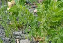 天仙子,是茄科天仙子属多年生草本植物,二年生草本,全体被黏性腺毛;根较粗壮,一年生的茎极短,自根茎发出莲座状叶丛,卵状披针形或长矩圆形,茎生叶卵形或三角状卵形,裂片多为三角形,顶端钝或锐尖,…全部>>