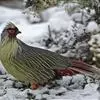 血雉雉科血雉属鸟类,别名血鸡、松花鸡,血雉的雄鸟大覆羽、尾下覆羽、尾上覆羽、脚、头侧、腊膜为红色,故称血雉。其别名甚多,各地皆异。在甘肃,因其胸侧和翅上覆羽沾绿,被称为“绿鸡”;因其羽毛形似柳叶,…全部>>