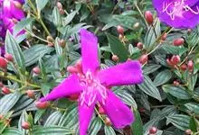 野牡丹:灌木,高0.5-1.5米,分枝多;茎钝四棱形或近圆柱形,毛扁平边缘流苏状。叶片坚纸质,卵形或广卵形,全缘,7基出脉,两面被糙伏毛及短柔毛。伞房花序生于分枝顶端,近头状,…全部>>