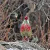 血雉雉科血雉属鸟类,别名血鸡、松花鸡,血雉的雄鸟大覆羽、尾下覆羽、尾上覆羽、脚、头侧、腊膜为红色,故称血雉。其别名甚多,各地皆异。在甘肃,因其胸侧和翅上覆羽沾绿,被称为“绿鸡”;因其羽毛形似柳叶,…全部>>