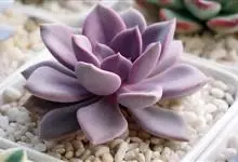 紫珍珠是景天科石莲花属的多年生肉质草本植物。植株中小型;叶片肉质,匙形,呈莲座状紧密排列;叶片粉紫色,叶缘呈粉白色,光照充足时颜色亮丽,不足时叶色会呈现深绿色或灰绿色,叶面光滑,被轻微白粉,…全部>>