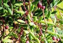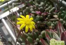 紫玄月是菊科厚敦菊属多年生肉质草本植物。蔓长30-60厘米;茎紫色;叶对生或互生茎上肉质,叶片细圆柱形,中间粗两端细稍弯曲;花序着生于叶腋,头状花序,舌状花黄色,管状花黄色;花期全年。…全部>>