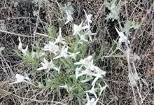 峨眉火绒草是菊科火绒草属植物。根出条细长,稍木质,平卧或斜升,有枯萎宿存的叶和顶生的叶丛,在叶丛上生长花茎。花茎常直立,长5—18厘米,不分枝,被白色棉状密茸毛,全部有叶,节间长1—2.5厘米。…全部>>