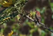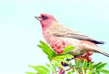 松雀:体重48-57克,体长192-213毫米。是一种体型较大而尾长的雀。嘴厚而带钩,两道明显白色翼斑与近黑的翼成对比。成年雄鸟深粉红色,具别致的脸部灰色图纹。成年雌鸟似雄鸟但橄榄绿色取代粉红色。…全部>>