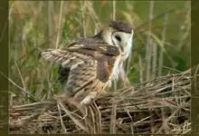 仓鸮,是鸮形目草鸮科草鸮属鸟类,其头大而圆,面盘白色,有时沾棕,眼先棕色,眼周浅棕色;面盘四周围有一棕色或橙黄色领环,颈侧及肩浅棕黄色,微具黑褐色及白色斑点;其余上体浅灰色,羽缘棕黄色,…全部>>