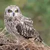 短耳鸮又名小耳木兔、田猫王、夜猫子等,是鸮形目鸱鸮科耳鸮属中小型猛禽动物。成鸟面盘显著,眼周黑色;眼先及内侧眉纹灰白色,面盘余部棕黄色杂以黑色细羽干纹;耳簇羽短小而几乎不外露,…全部>>