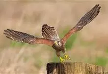红隼:是隼科、隼属的小型猛禽之一。体重173-335克,体长305-360毫米。翅狭长而尖,尾亦较长,外形和共同爪隼非常相似。雄鸟头蓝灰色,背和翅上覆羽砖红色,具三角形黑斑;腰、尾上覆羽和尾羽蓝灰色,…全部>>