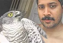 褐耳鹰的体形比苍鹰要小得多,为小型猛禽,体长为31-44厘米,体重217-325克。上体灰色,下体具赤褐色横斑。第6枚初级飞羽外羽片无缺刻,次外侧的4对尾羽具5道黑褐色横斑。眼先具白色短羽。…全部>>