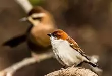 家麻雀:共有13个亚种。是小型鸟类,体长14-16厘米。背栗红色具黑色纵纹,两侧具皮黄色纵纹;颏、喉和上胸黑色,脸颊白色,其余下体白色,翅上具白色带斑。雄鸟与树麻雀的区别在顶冠及尾上覆羽灰色,耳无黑…全部>>