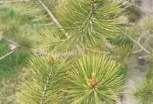 偃松 Regel)是松科松属植物。灌木,高达3-6米,树干通常伏卧状,基部多分枝,旬伏的大枝可长达10米或更长,生于山顶则近直立丛生状;树皮灰褐色,裂成片状脱落;一年生枝褐色,密被柔毛。针叶5针一束…全部>>
