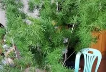 蓬莱松是天门冬科、天门冬属多年生丛生草本植物。宿存,圆柱形肉质根,纵截面为绿色和表面灰色。植株高可达3米。茎呈圆柱形或近四边形,底部木质化,具有灰色或灰褐色。幼嫩的茎在每个节上都被紫绿色鳞片包,…全部>>