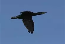 普通鸬鹚是属于鲣鸟目鸬鹚科鸬鹚属鸟类,又名水老鸦、鱼鹰、乌鬼、黑鱼郎等。体长720—900毫米,雌雄同型。通体黑色,有绿褐色金属光泽;喙厚重,喙基和喉囊橙黄色,脸颊及喉白色;夏羽颈及头饰具白色丝状羽,…全部>>