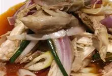 白切鸡又叫白斩鸡,是粤菜系鸡肴中的一种,始于清代的民间酒店。属浸鸡类。其特点为制作简易,刚熟不烂,不加配料且保持原味。白切鸡通常选用三黄鸡与沙姜、蒜茸、葱等食材,慢火煮浸后,晾干切块。成菜后,…全部>>