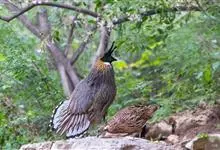 红腹角雉属于鸡形目雉科,雄鸟体羽及两翅主要为深栗红色,满布具黑缘的灰色眼状斑,下体灰斑大而色浅。雌鸟上体灰褐色,下体淡黄色,杂以黑、棕、白斑。全部>>