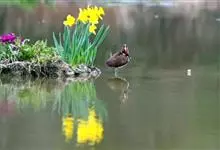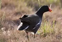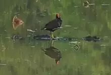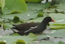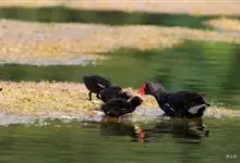 黑水鸡:是鹤形目、秧鸡科的鸟类,共有12个亚种。中型涉禽,体长24-35厘米。嘴长度适中,鼻孔狭长;头具额甲,后缘圆钝;嘴和额甲色彩鲜艳。翅圆形,第2枚初级飞羽最长,或第2枚和第3枚初级飞羽等长,…全部>>