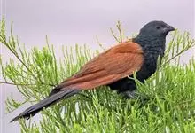 褐翅鸦鹃,是鹃形目鸦鹃科鸦鹃属的鸟类。褐翅鸦鹃的身体为黑色;头颈和胸带蓝紫色金属光泽并具黑亮的羽干纹,下胸至腹部泛金属绿光泽;两翼和肩部为棕栗色,外侧飞羽具暗色羽端,尾羽闪铜绿色光泽;虹膜赤红色,…全部>>