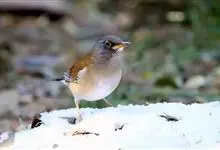 白眉鸫,是脊索动物门鸟纲雀形目鸫科鸫属中等体型的灰褐色鸫类。雄鸟头、颈、顺部至上颈灰色,具白色眉纹和下眼圈,眼先深色,上背至尾上覆羽橄榄褐色,上胸和两胁栗褐色,下胸、腹部和尾下覆羽白色,…全部>>