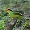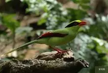 蓝绿鹊:中型鸟类,共有5个亚种。体长36-38厘米。尾长,嘴、脚红色。通体羽色主要为草绿色,宽阔的黑色贯眼纹向后延伸到后颈,在绿色的头侧极为醒目。两翅栗红色,内侧飞羽具黑色次端斑和白色尖端。尾绿色,…全部>>