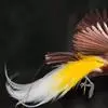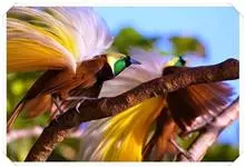 大极乐鸟是极乐鸟属中最大的鸟种。成年雄鸟体长可达到43厘米,雌性可达35厘米。雄鸟的额、颊、喉等墨绿色;头、颈黄色;上体暗赤栗色;腹部葡萄红色,胁部有长饰羽,其基部橙黄,中部黄色,…全部>>