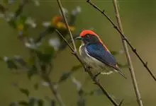 朱背啄花鸟:体重6-8克,体长81-97毫米。是一种小型的黑色及红色啄花鸟。雄鸟顶冠、背及腰猩红色,两翼、头侧及尾黑,两胁灰,下体余部白色。雌鸟上体橄榄色,腰及尾上覆羽猩红,尾黑。亚成鸟清灰色,嘴橘黄,…全部>>