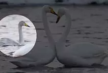 小天鹅为大型水禽,体长110~130厘米,体重4~7千克,雌鸟略小。它与大天鹅在体形上非常相似,同样是长长的脖颈,纯白的羽毛,黑色的脚和蹼,身体也只是稍稍小一些,颈部和嘴比大天鹅略短,但很难分辩。最…全部>>