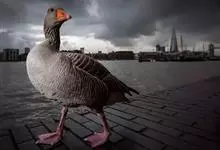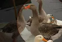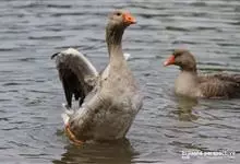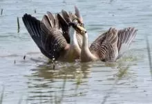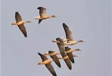 灰雁:体长70-90厘米,翼展147-182厘米,体重2.5-4千克,寿命17年。体大而肥胖。嘴、脚肉色,上体灰褐色,下体污白色,飞行时双翼拍打用力,振翅频率高。脖子较长。腿位于身体的中心支点,…全部>>
