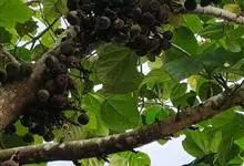 大果榕是桑科榕属的小乔木,株高可达10米;幼枝被柔毛;叶互生,宽卵状心形或近圆形;雄花无梗、匙形、花丝长,雌花生于雌株榕果内,子房白色;榕果簇生于树干基部或老茎短枝上、扁球形或陀螺形,…全部>>