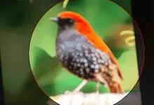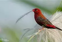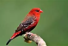 红梅花雀小型鸟类,体长9-10厘米。雄鸟通体朱红色,背、肩、胸等满布白色小斑点,两翅和尾黑褐色均具白色端斑,嘴红色,脚蜡黄色。雌鸟上体淡褐色或赭褐色,翅上中覆羽、大覆羽和内侧飞羽末端具白色斑点,…全部>>