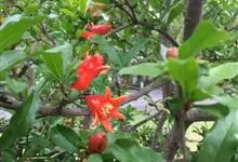 石榴是千屈菜科石榴属落叶灌木或乔木,一般植株高3-5米,少数可达到10米;枝顶常有尖锐长刺,幼枝有棱角但无毛,老枝近圆柱形;叶通常为对生,长圆状披针形;花大,…全部>>