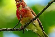 酒红朱雀小型鸟类,体长13~15厘米。雄鸟通体深红色,头部深朱红或棕红色,下背和腰玫瑰红色,眉纹粉红色而具丝绢光泽。两翅和尾黑褐或灰褐色、具暗红色狭缘,内侧两枚三级飞羽具淡粉红色先端。…全部>>